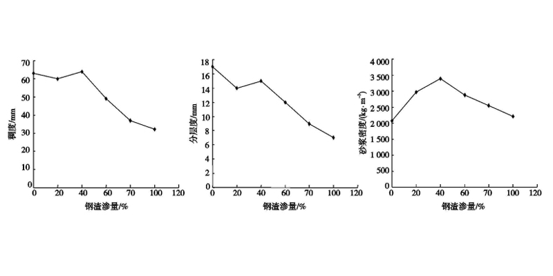 1、經(jīng)過調(diào)查研究顯示,鋼渣的稠度密度等隨著鋼渣含量的不斷增加呈現(xiàn)先增加后較少的趨勢,也就是說鋼渣的含量并非越多越好,當(dāng)鋼渣含量占砂漿總量的百分之四十時,砂漿的稠度密度為最高值,此時砂漿的性能更好且保水性更好。